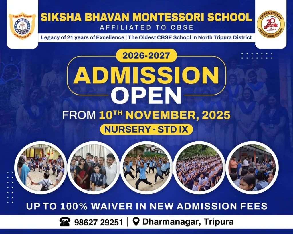 - Siksha Bhavan Montessory School, Shibbari Road, Baruakandi, Dharmanagar, Tripura-799250